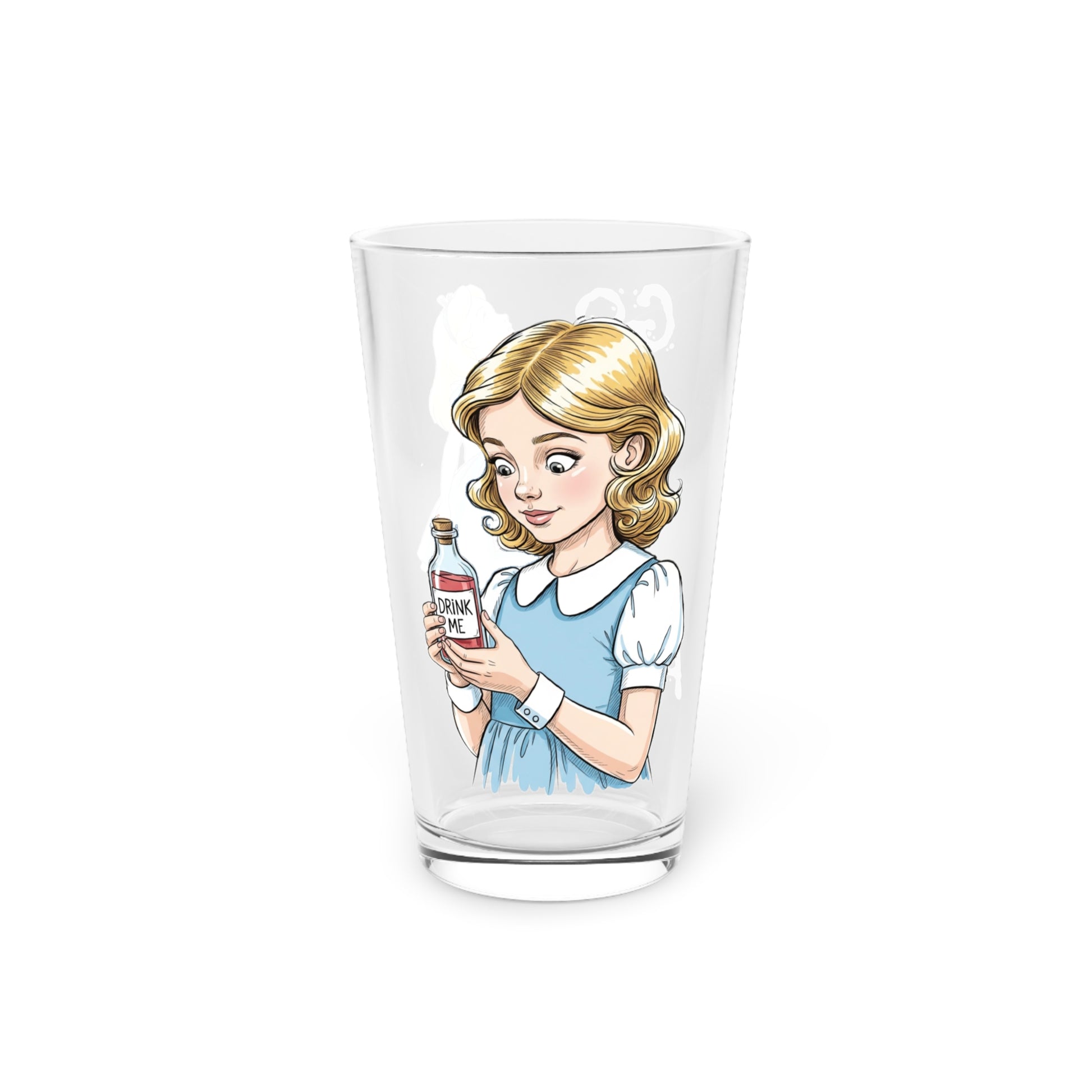 Alice in Wonderland 'Drink Me' Pint Glass, 16oz, 'Go Ask Alice' Fantasy Novelty Glassware, Fun Drinkware