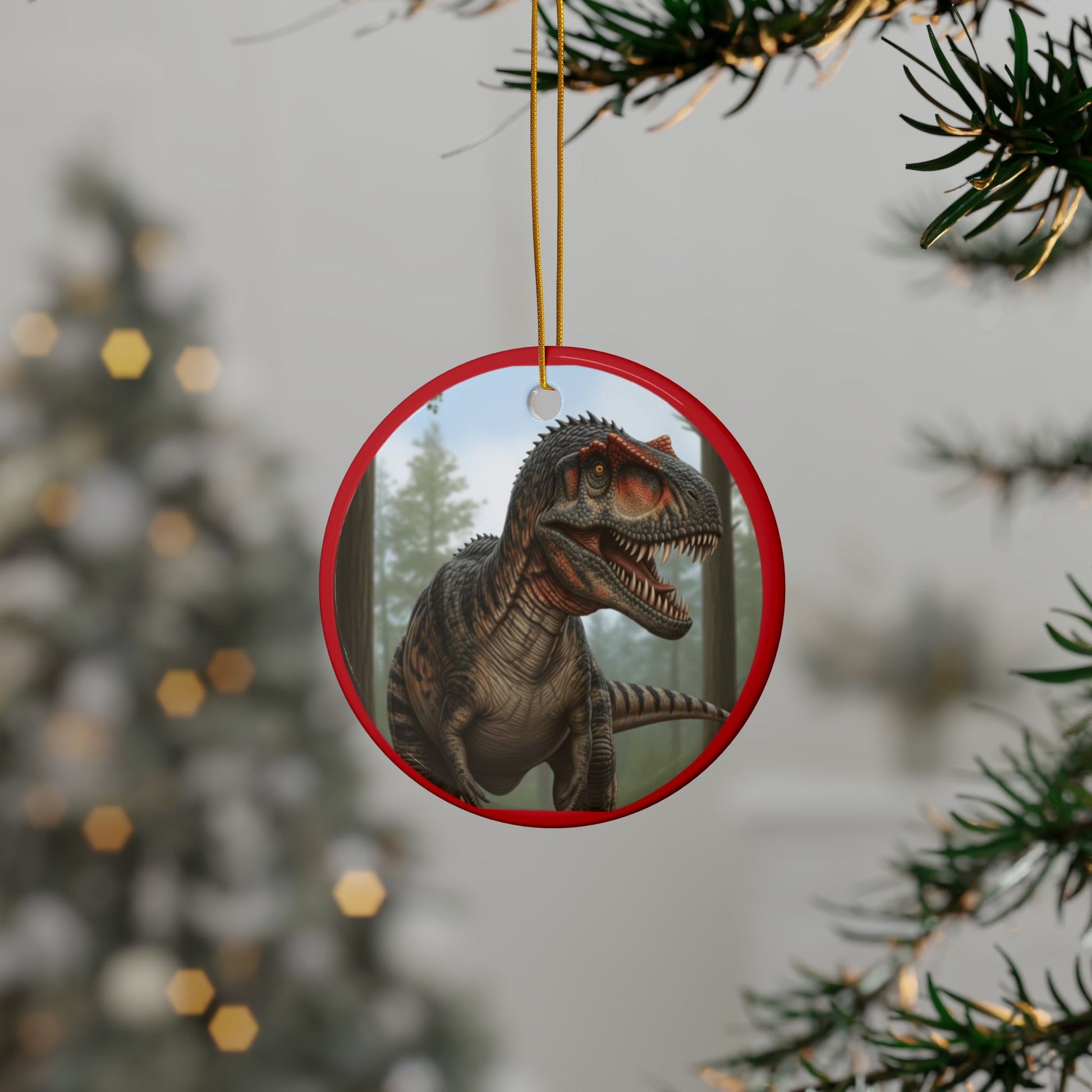 Allosaurus Dinosaur Ceramic Ornaments for Kids, Unique Holiday Decorations, Fun Gift for Dinosaur Lovers, 2-Side Print Christmas Ornaments