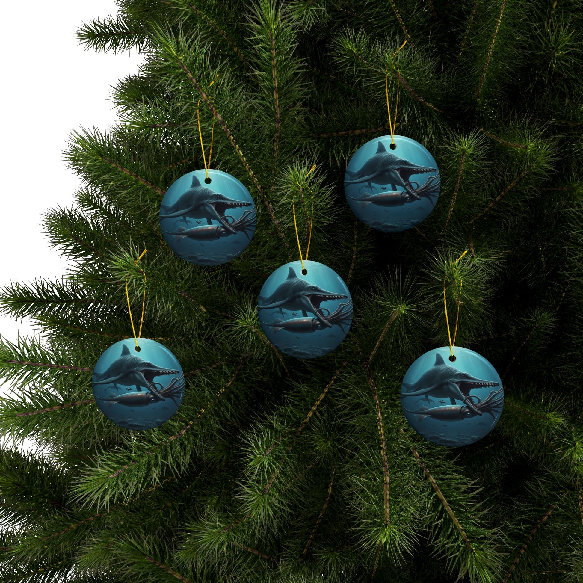 Ceramic Ornaments, Plesiosaurus Dinosaur Holiday Tree Decor, 2-Side Print, (1pc, 3pcs, 5pcs, 10pcs), Great Gift for Dino Lovers, Jurassic