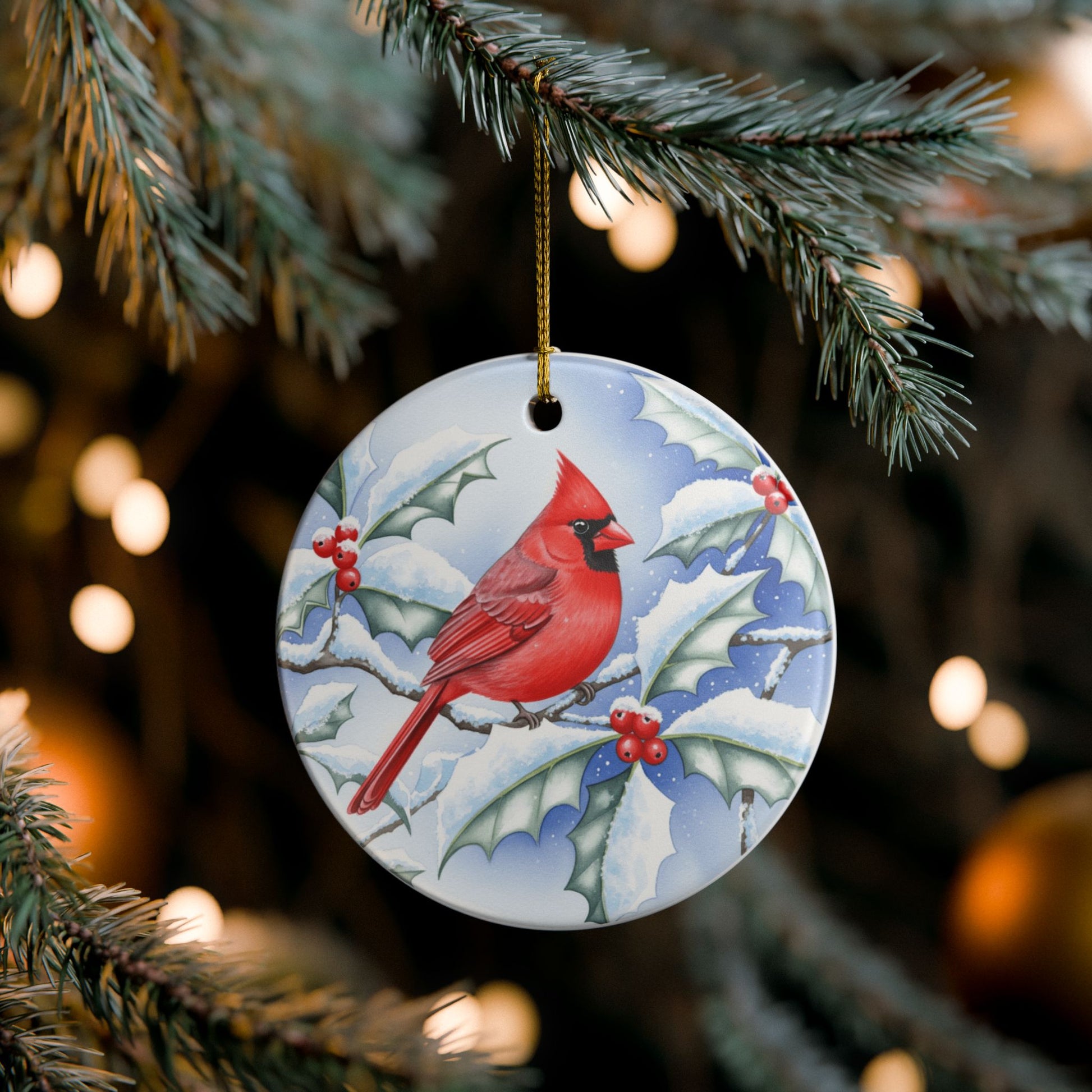Christmas Cardinal Ceramic Ornament, Holiday Decor, Winter Decoration, Unique Gift, Hand-painted Ornament, Festive Home Decor
