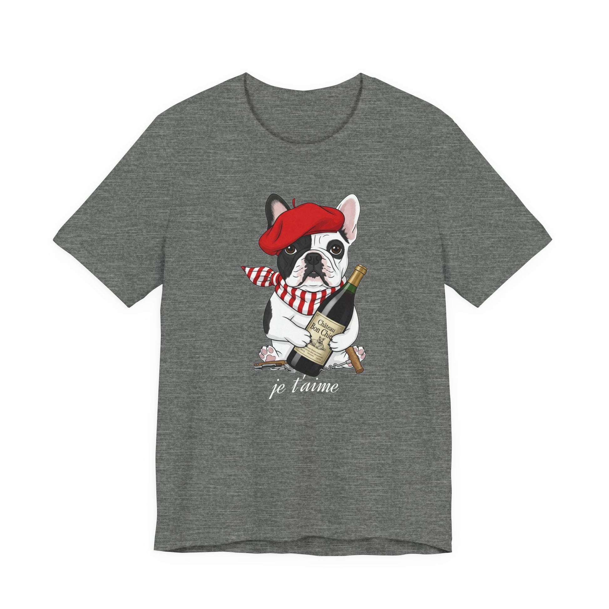 Cute French Bulldog Lovers Tee, Casual Wear, Je t'aime Shirt, Unisex T-Shirt for Birthdays, Anniversaries, Pet Lovers