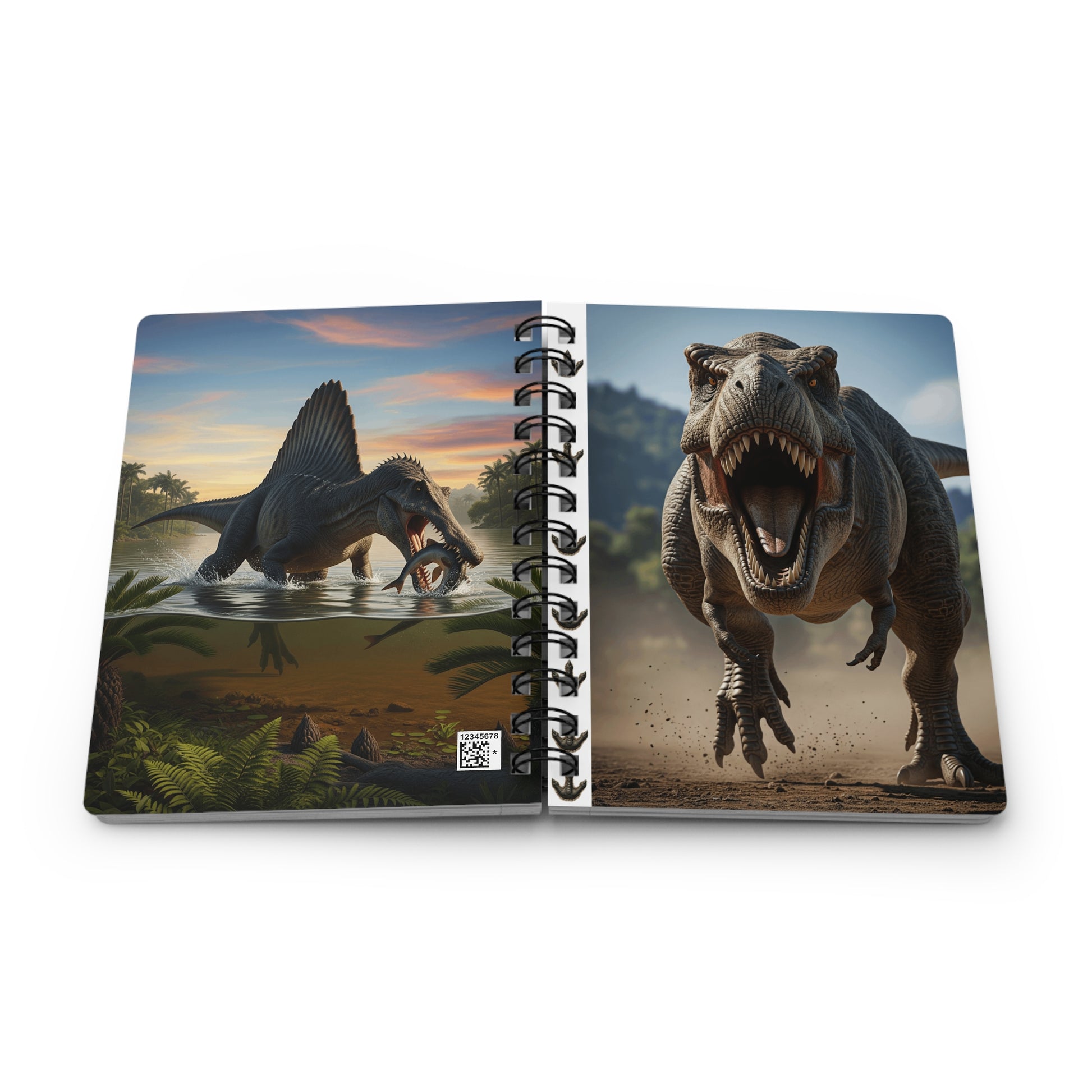 Immersive four color prehistoric graphics including T. Rex, Spinosaurus, Pterosaur, and Plesiosaur make this a unique, eye-catching journal. Unleash your creativity with our vibrant Spiral Bound Journal, designed for those who appreciate both functionality and eye-catching aesthetics. The glossy laminated cover adds durability while showcasing stunning designs, making it a perfect companion for your daily notes, sketches, or reflections. Whether at work, school, or home, this journal is ideal for students, artists, and anyone looking to capture their thoughts in style. It's a great gift for birthdays, holidays, or special occasions. Dive into new adventures of creativity and let your imagination flow freely!