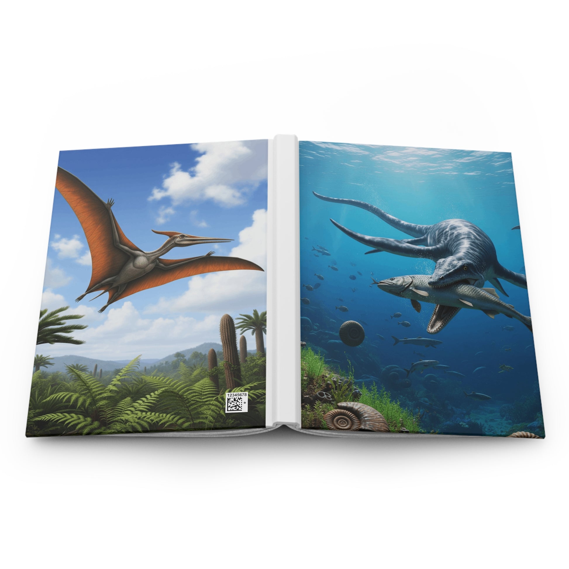 Elevate your note-taking experience with this vibrant Hardcover Journal featuring a flying Pterosaur and and ocean dwelling Plesiosaur. Its matte laminated cover not only enhances durability but also gives it a sleek, polished look. Ideal for artists, students, or anyone who loves to jot down thoughts, this journal is perfect for daily reflections, creative sketches, or planning your next adventure. The exhilarating designs showcase stunning underwater or prehistoric scenes, sparking imagination and creativity. With 150 lined pages, you have ample space for ideas, making it a thoughtful gift for birthdays, holidays, or back-to-school occasions. Whether you are journaling your dreams or crafting stories, this journal fits seamlessly into your life, encouraging creativity any day of the week.