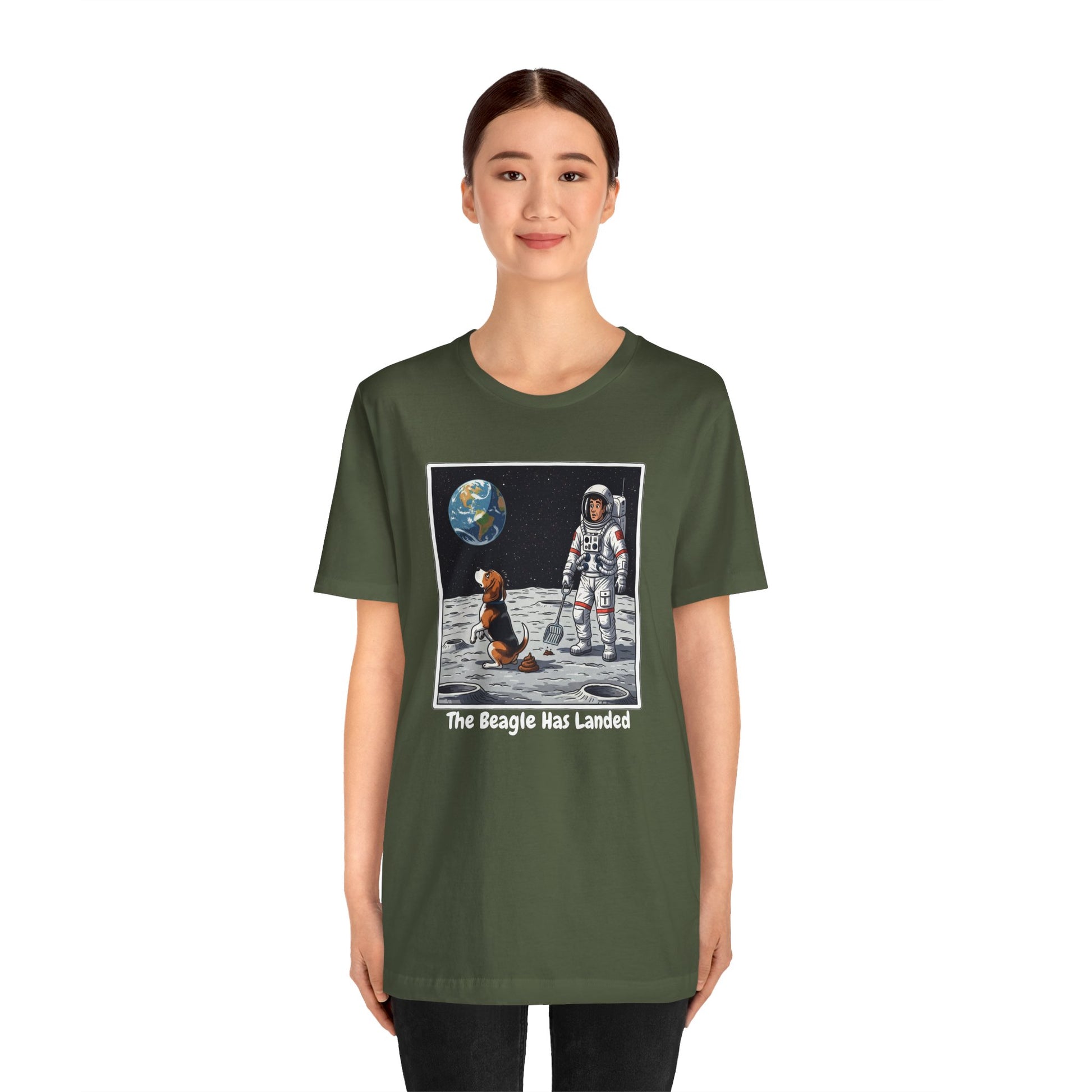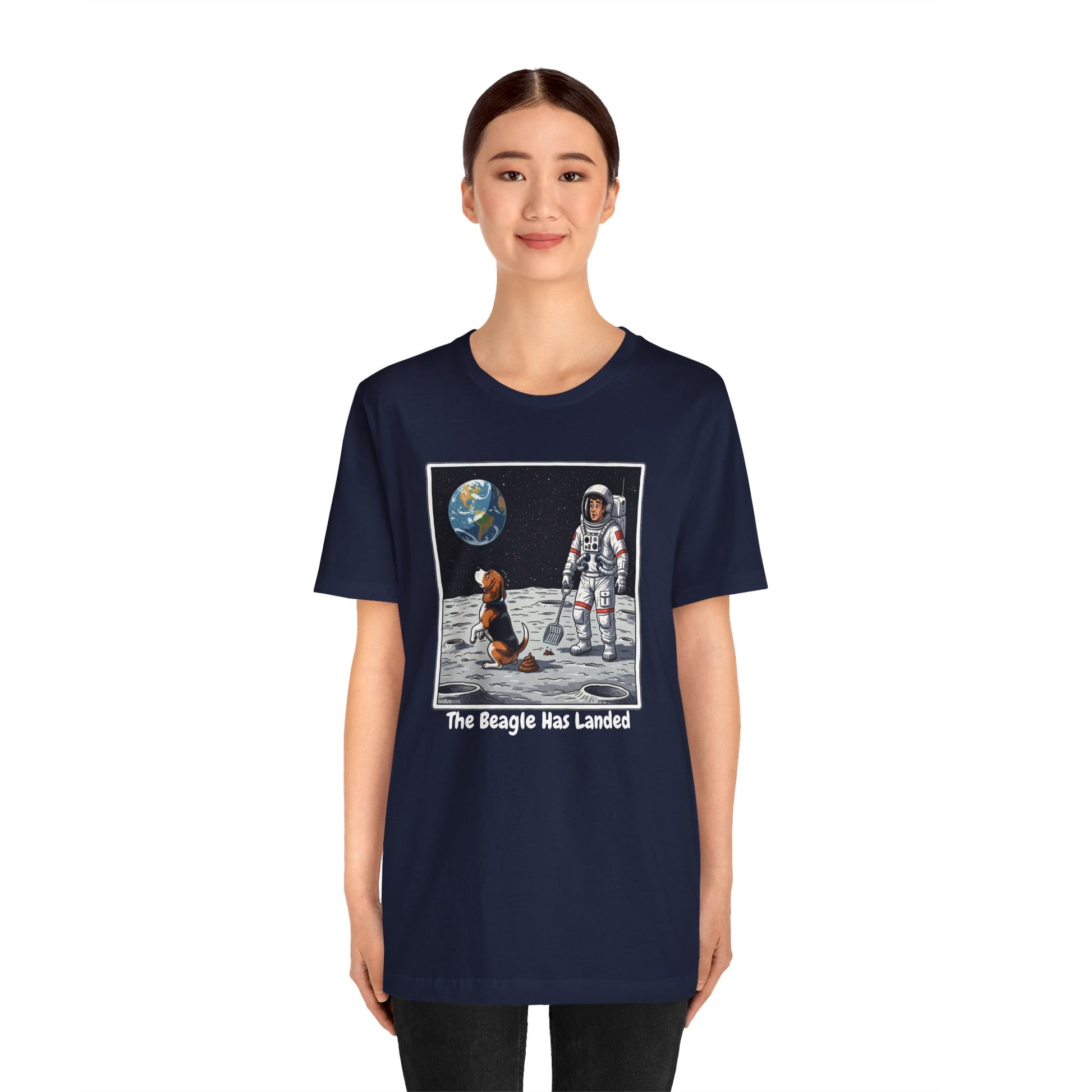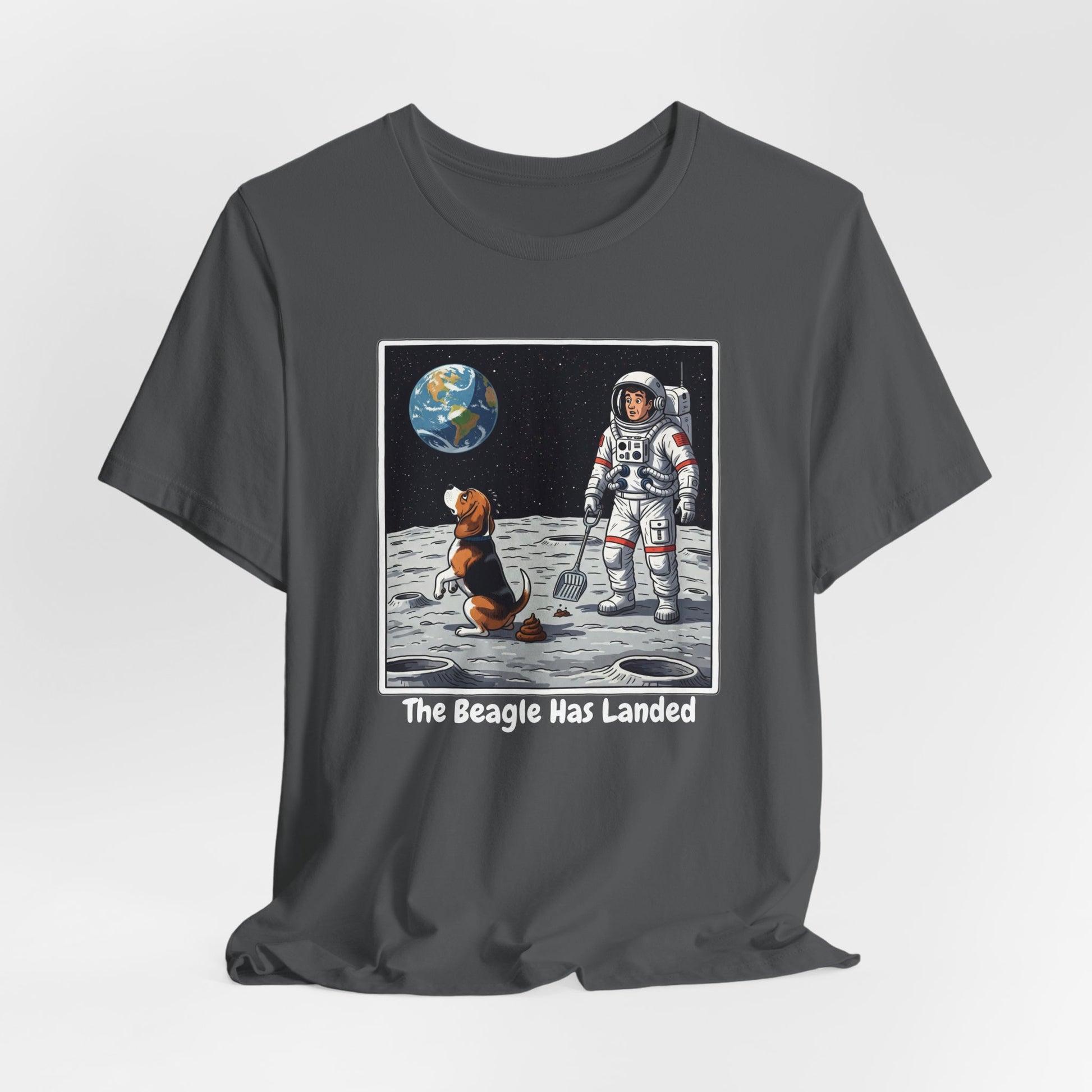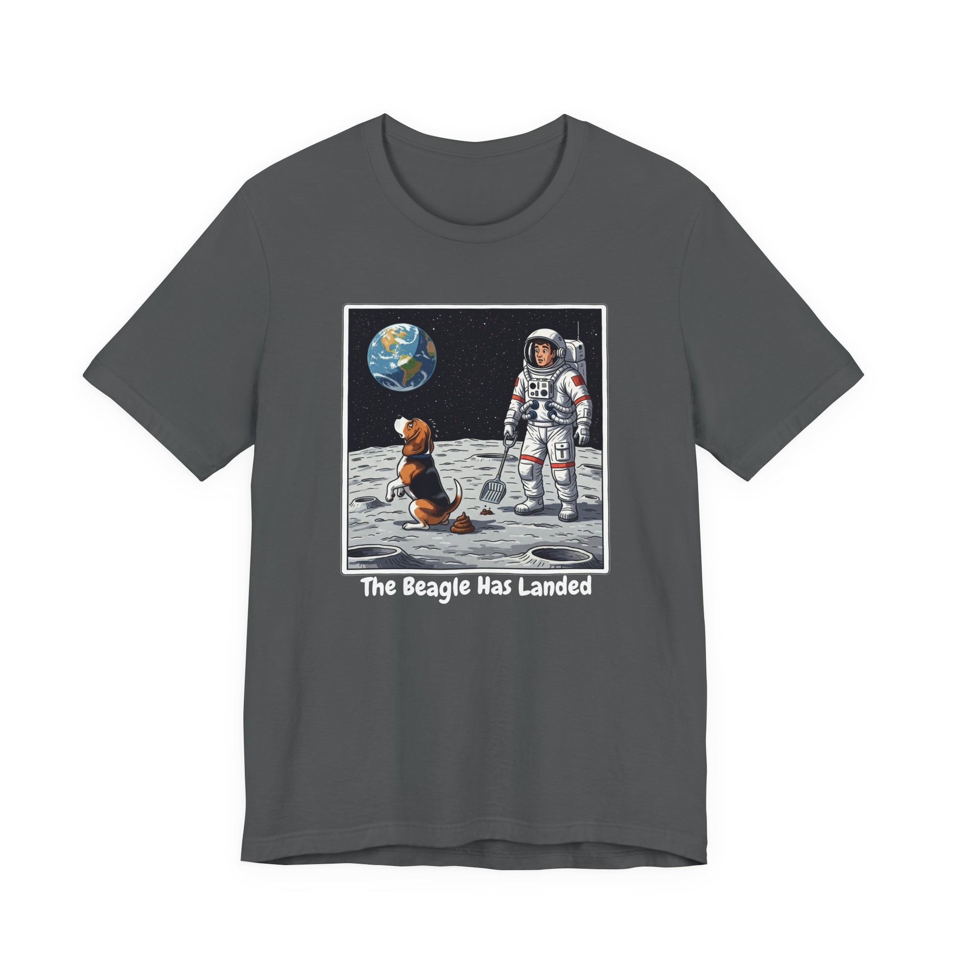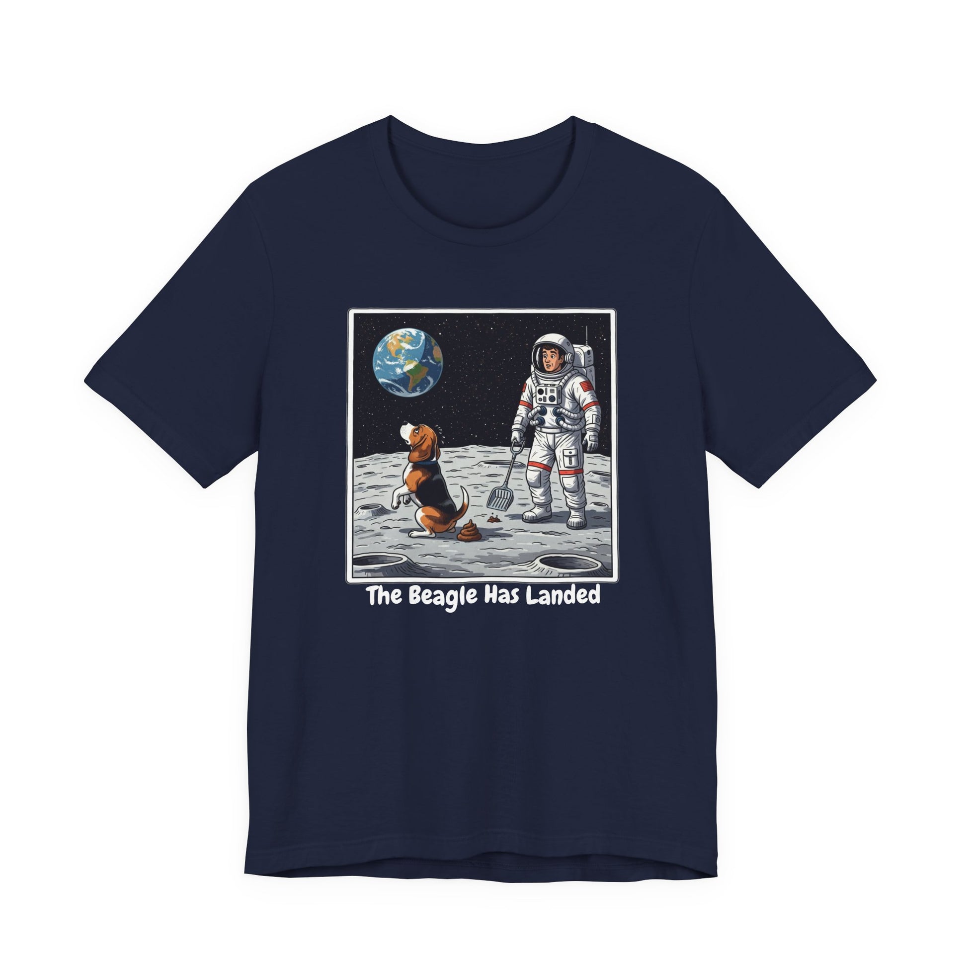Funny Beagle Moon Landing Tee - "The Beagle Has Landed" Graphic, Pooper Scooping Astronaut Shirt, Unisex Casual T-Shirt, Cool Pet Gift