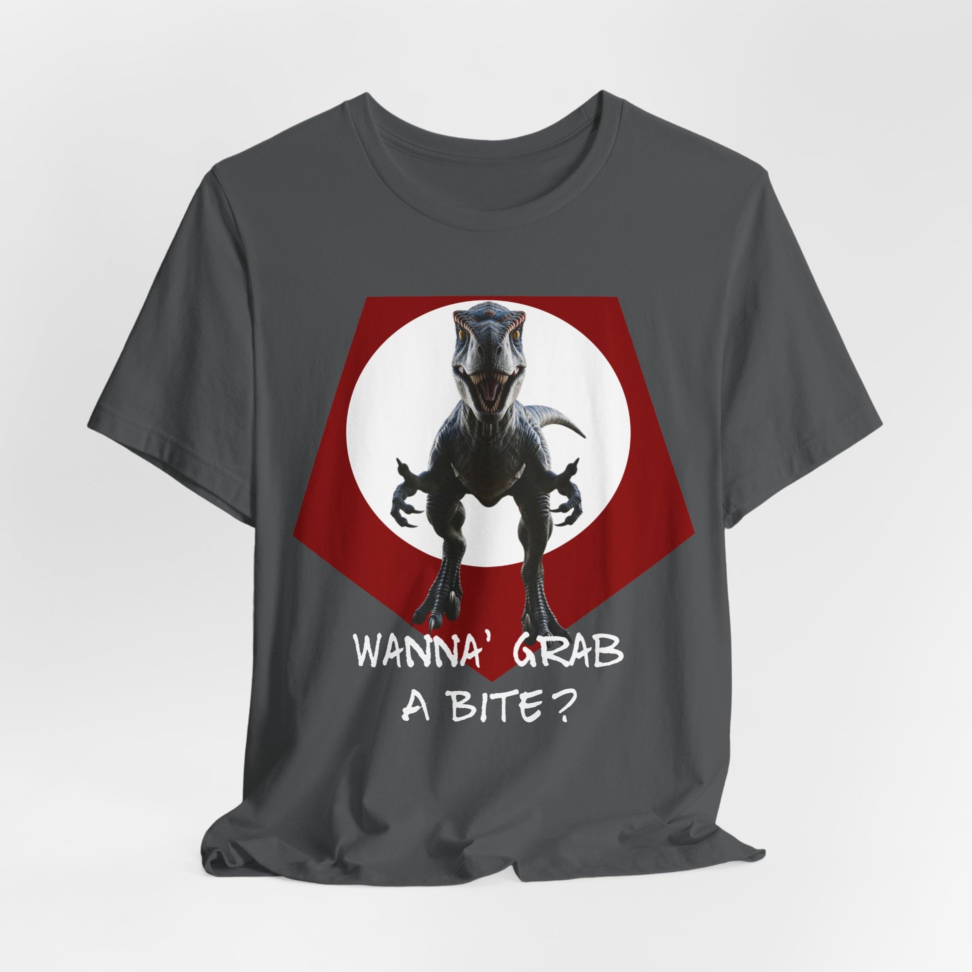 Funny Dinosaur Velociraptor 'Grab a Bite' Graphic Tee - Perfect for Casual Wear, Birthday Gifts, Jurassic Theme Parties, Chefs