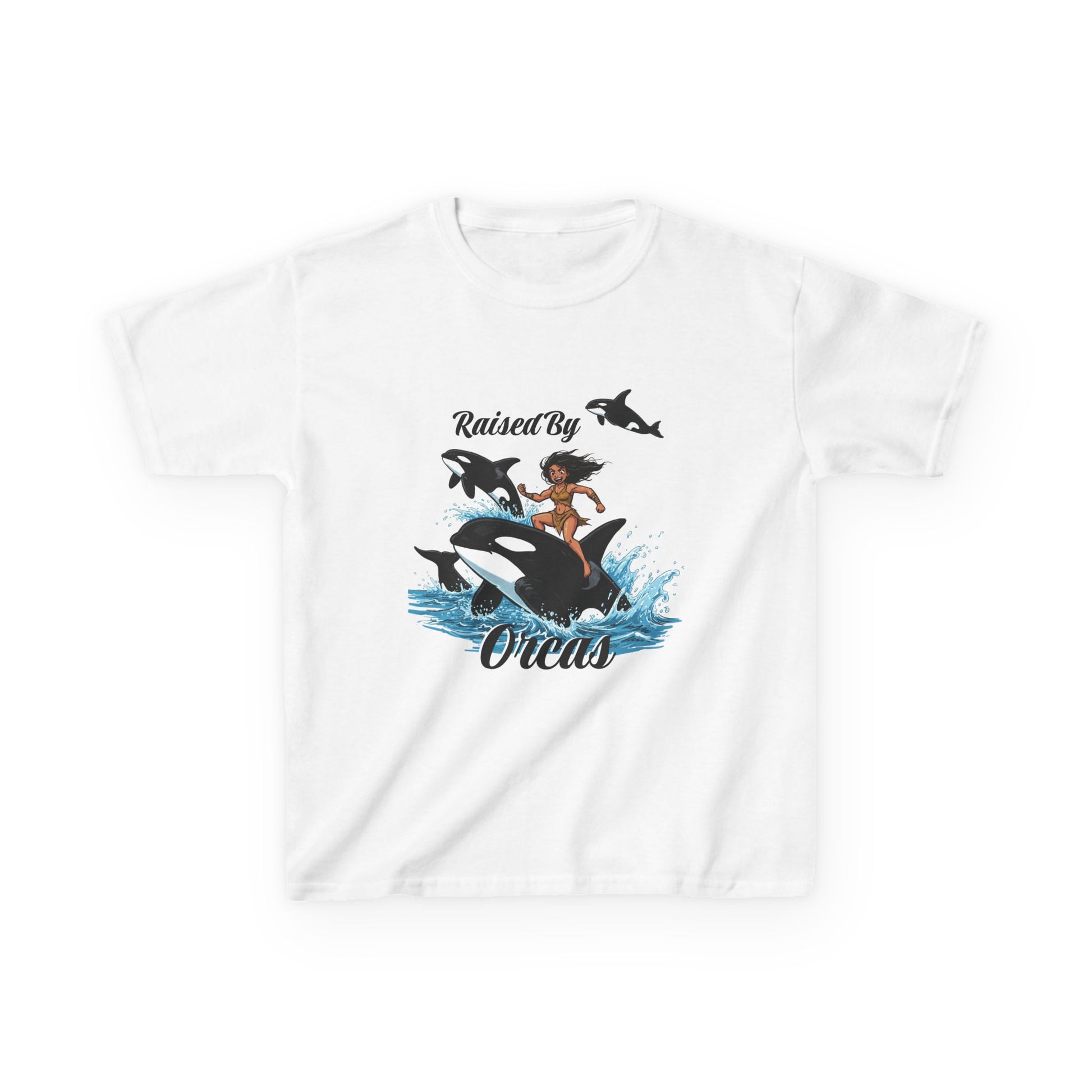 Funny 'Raised by Orcas' Whale-Themed Kids Tee | Fun & Playful Shirt for Ocean Lovers, Birthday Gift, Summer Outing, Beach Day, Adventure Shirt