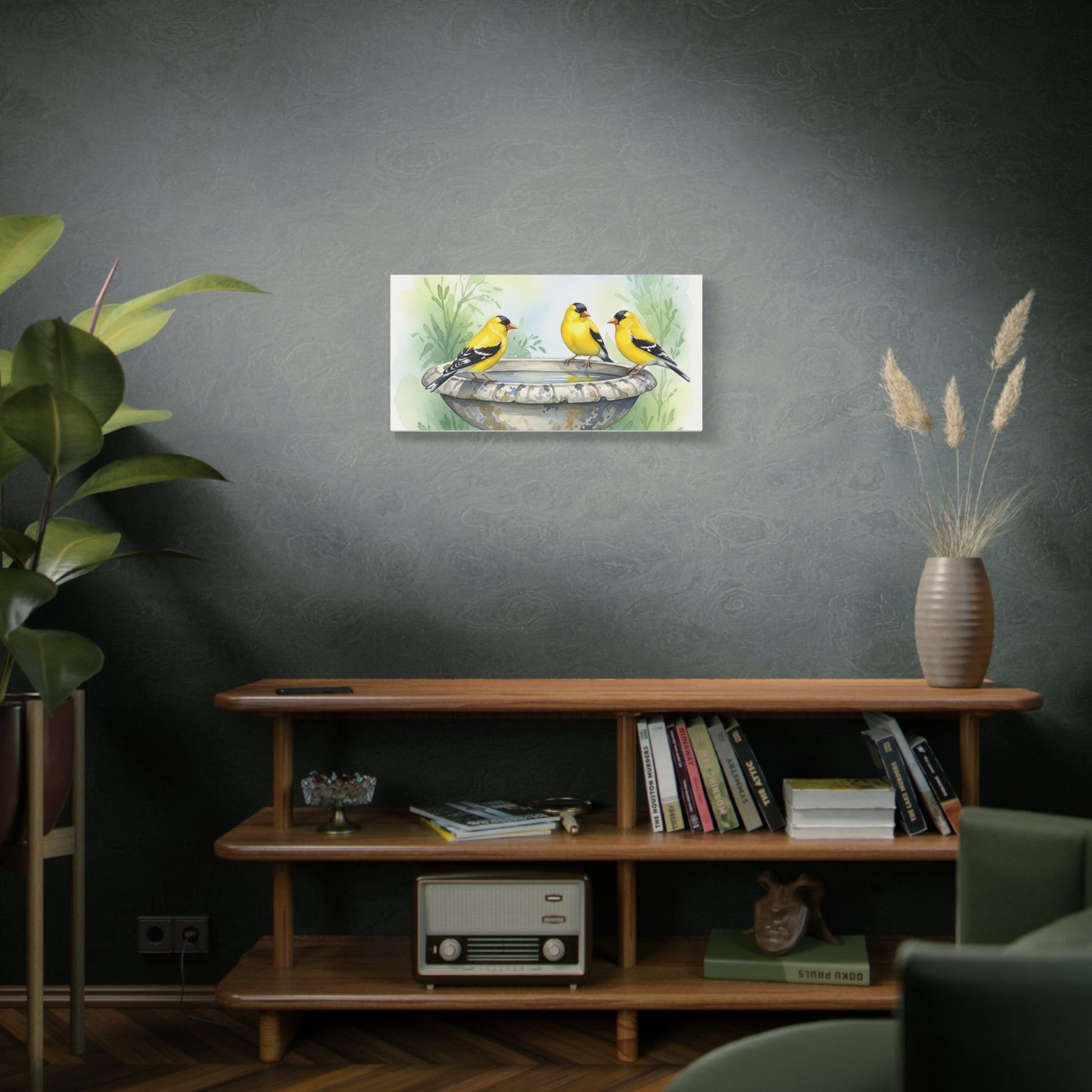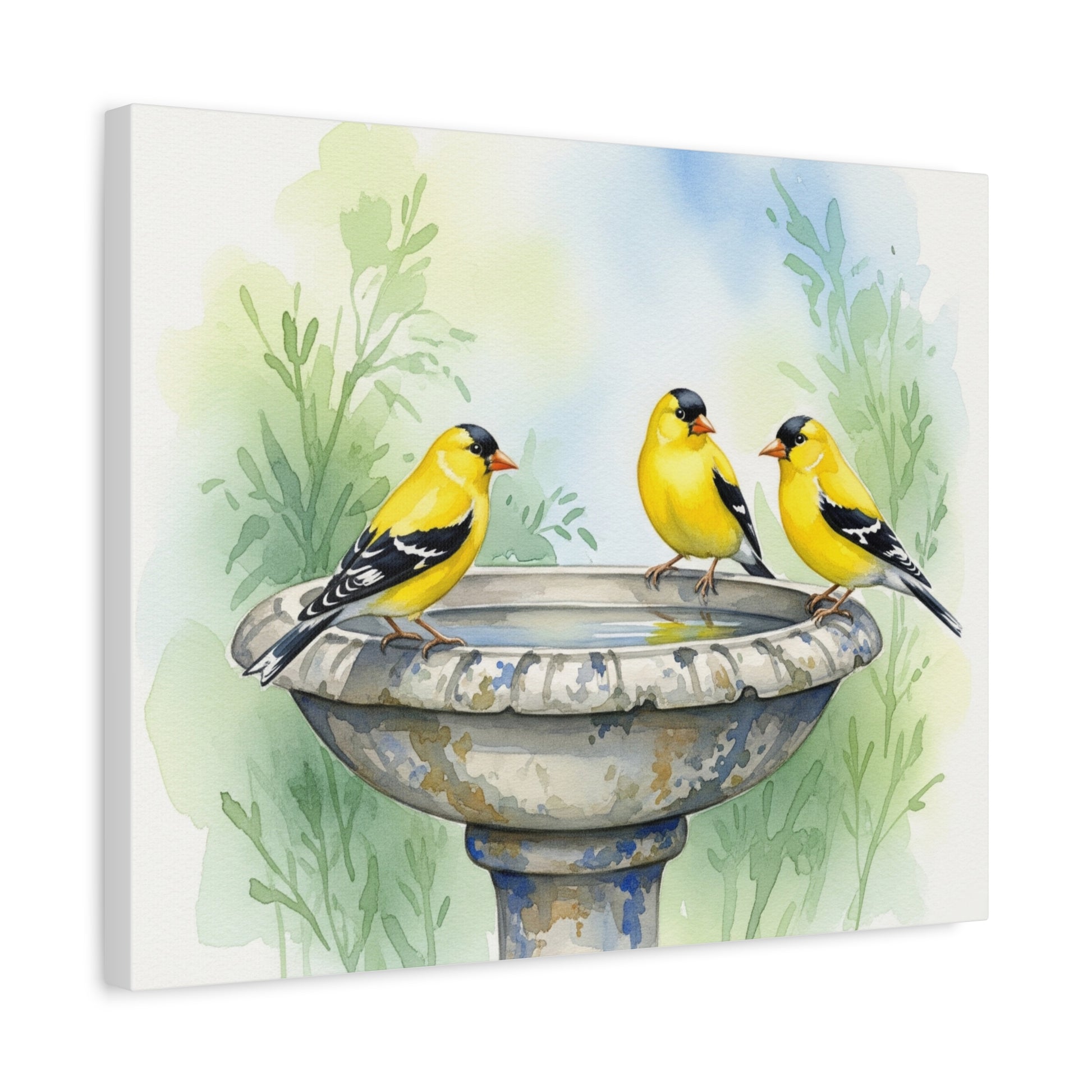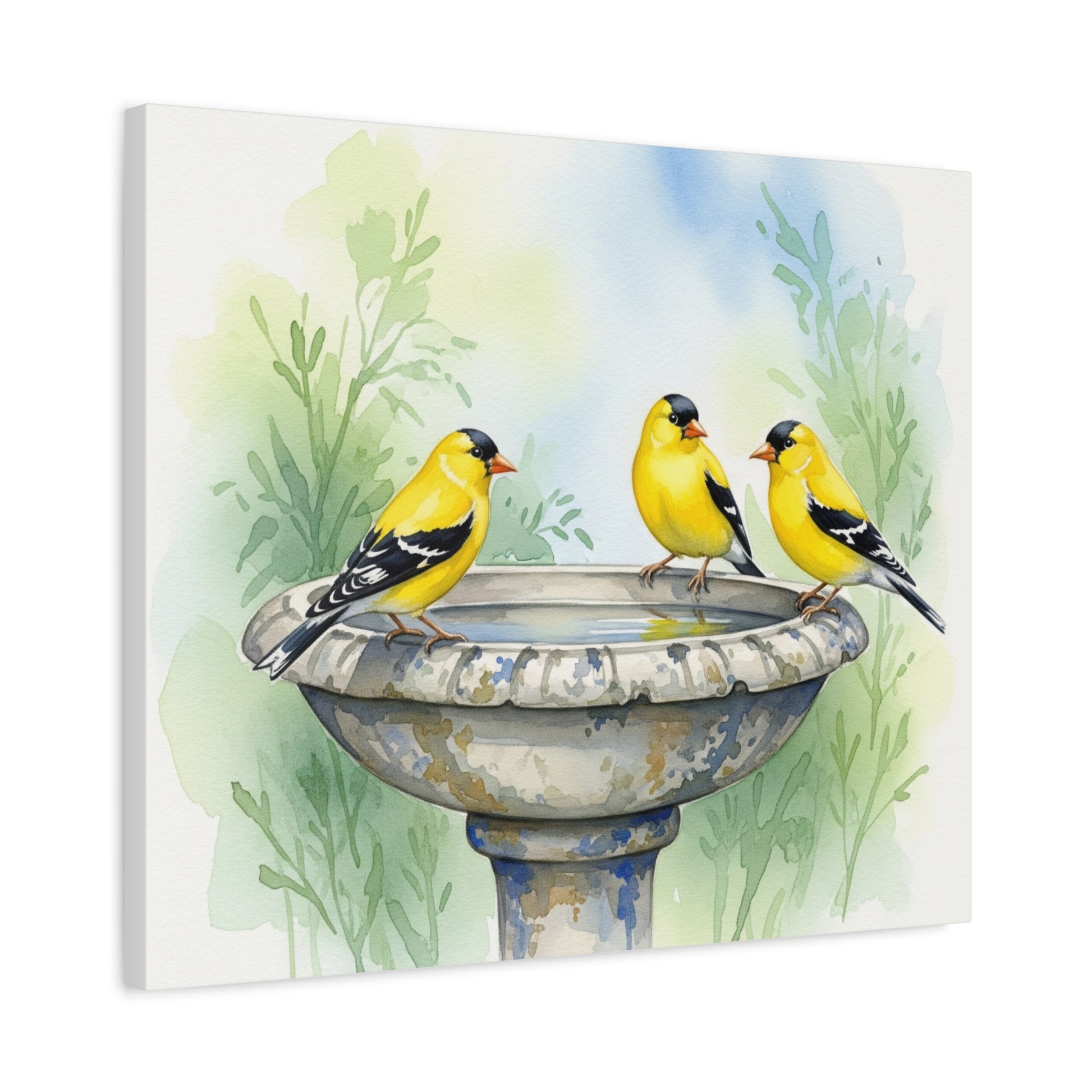 Goldfinches on Fountain Canvas Art, Nature Wall Decor, Yellow Finch Print, Home Decor, Gift for Bird Lovers, Spring Decoration