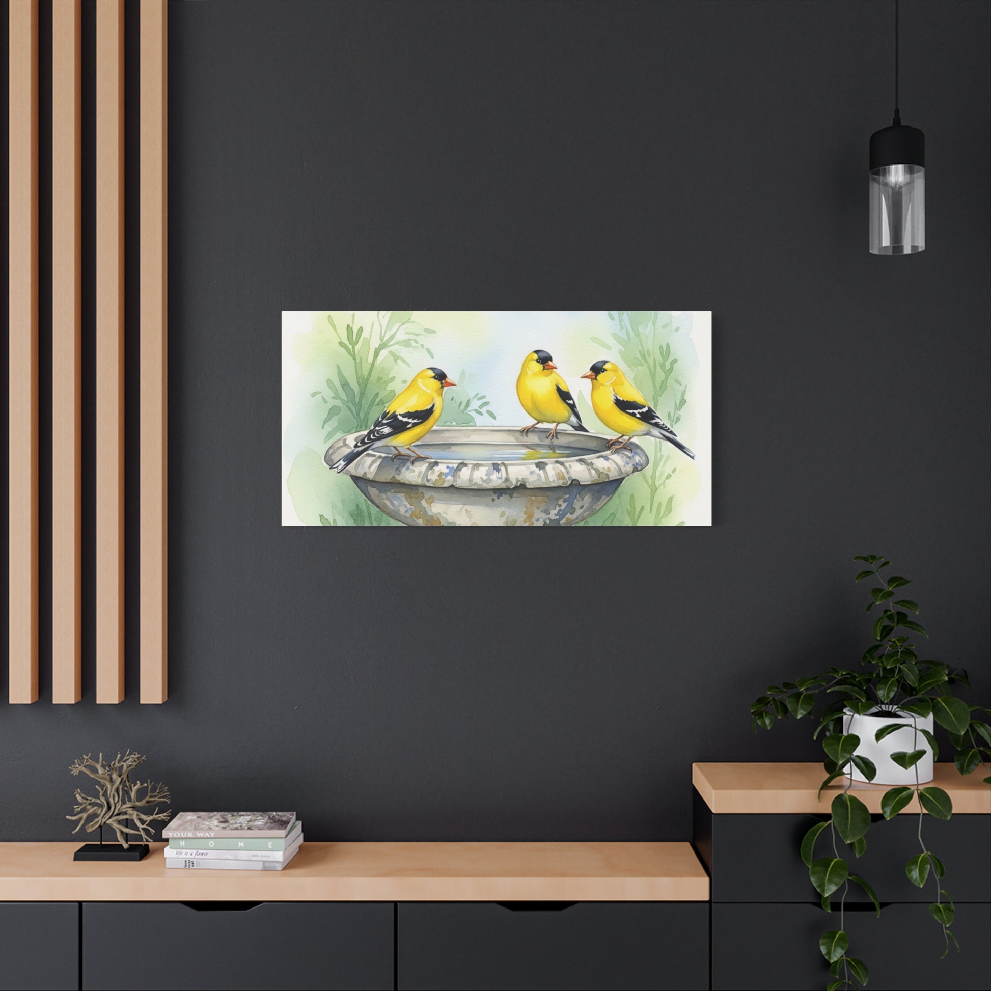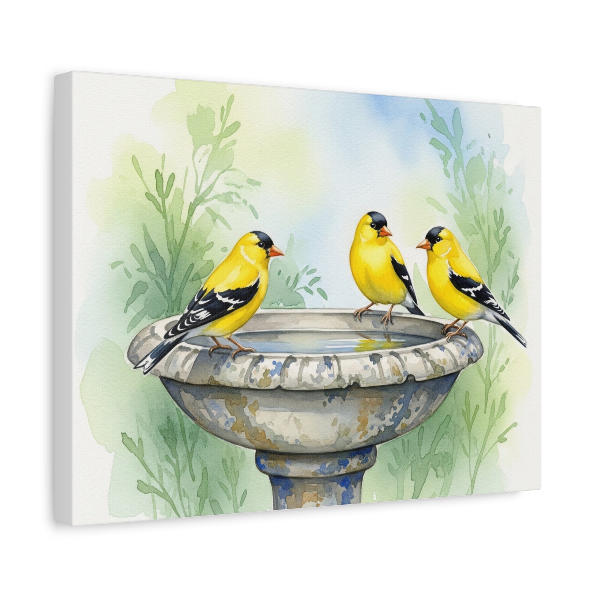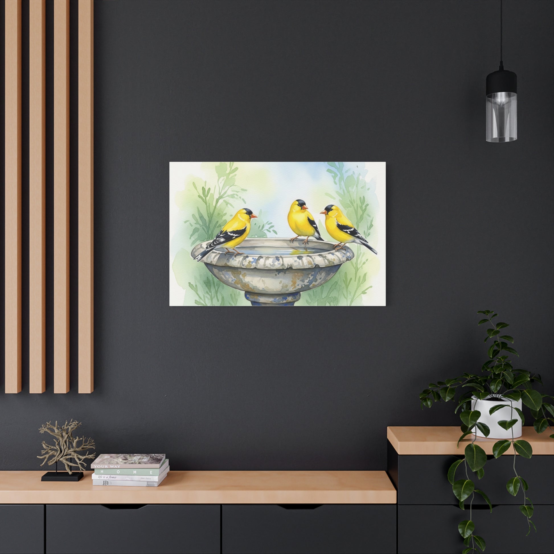 Goldfinches on Fountain Canvas Art, Nature Wall Decor, Yellow Finch Print, Home Decor, Gift for Bird Lovers, Spring Decoration