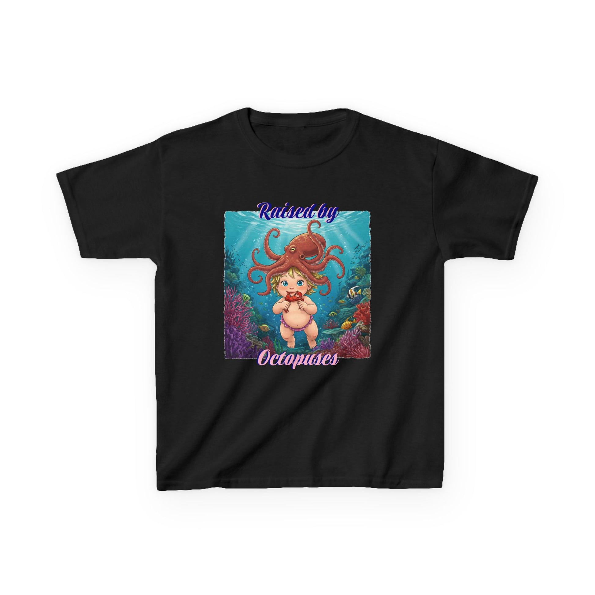 Ocean-Inspired Kids Tee - 'Raised by Octopuses' - Cute T-Shirt for Summer, Ocean Lovers, Birthday Gift, Under the Sea Theme, Fun Casual Wear