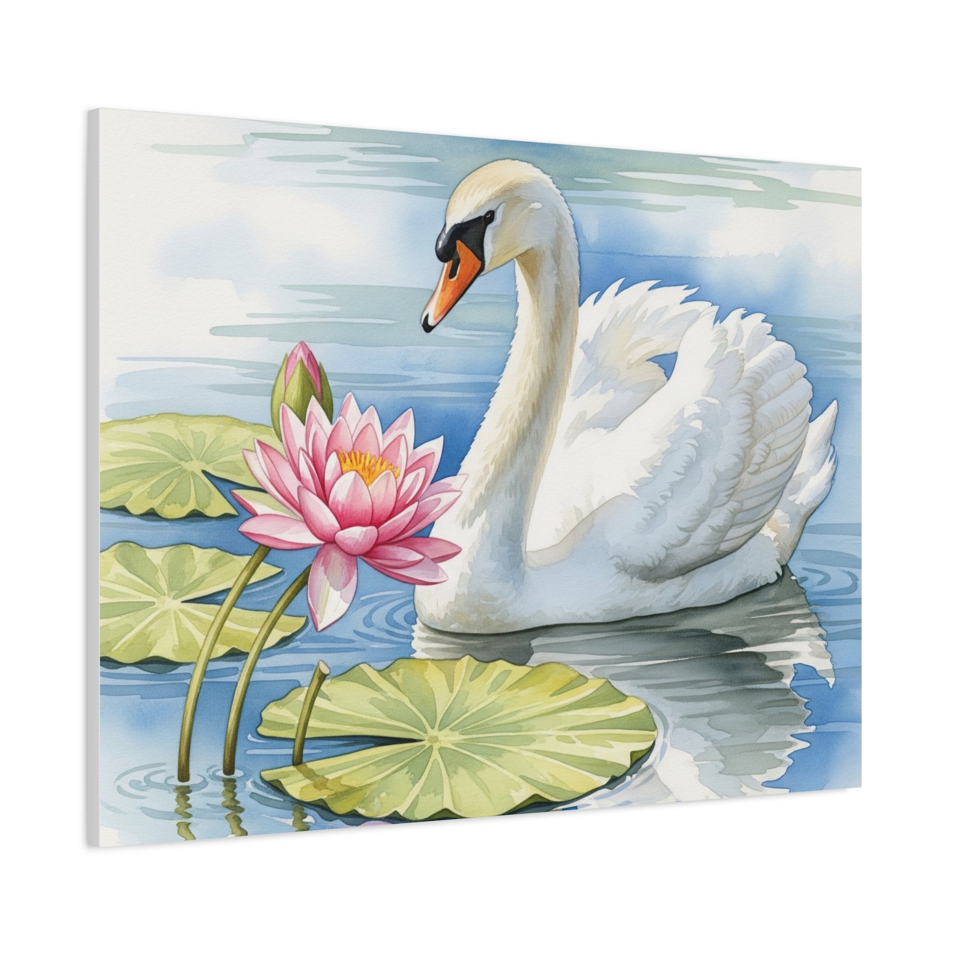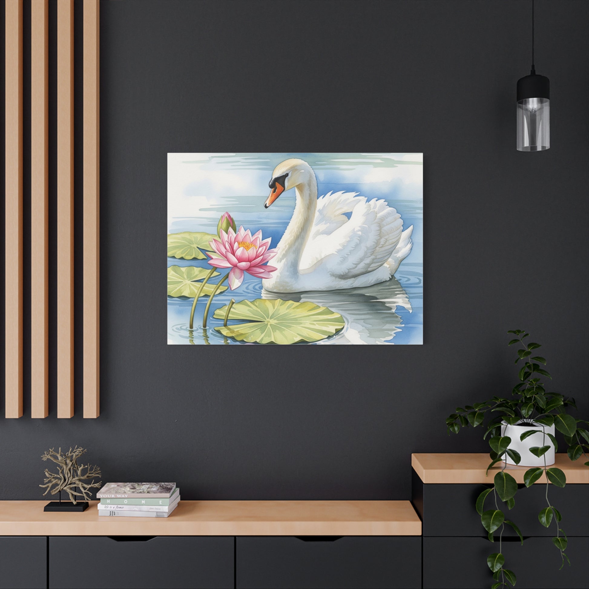 Swan and Lotus Canvas Art, Home Décor, Nature Wall Art, Gift for Nature Lovers, Floral Artwork